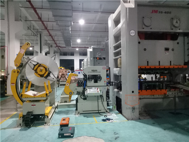 →800高強(qiáng)板三合一整平送料機(jī)沖壓自動化生產(chǎn)線客戶現(xiàn)場