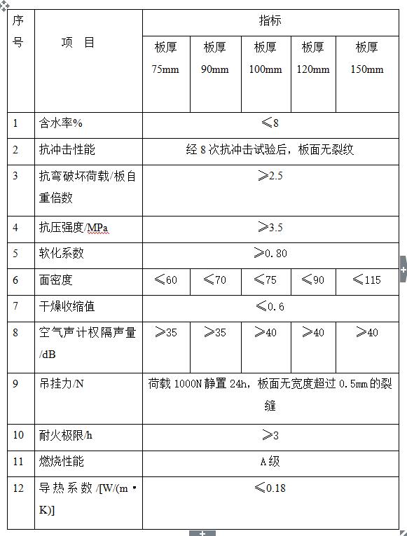 增強型發(fā)泡水泥無機復(fù)合條板物理學(xué)性能指標(biāo)