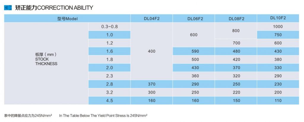 中板三合一送料機矯正能力表